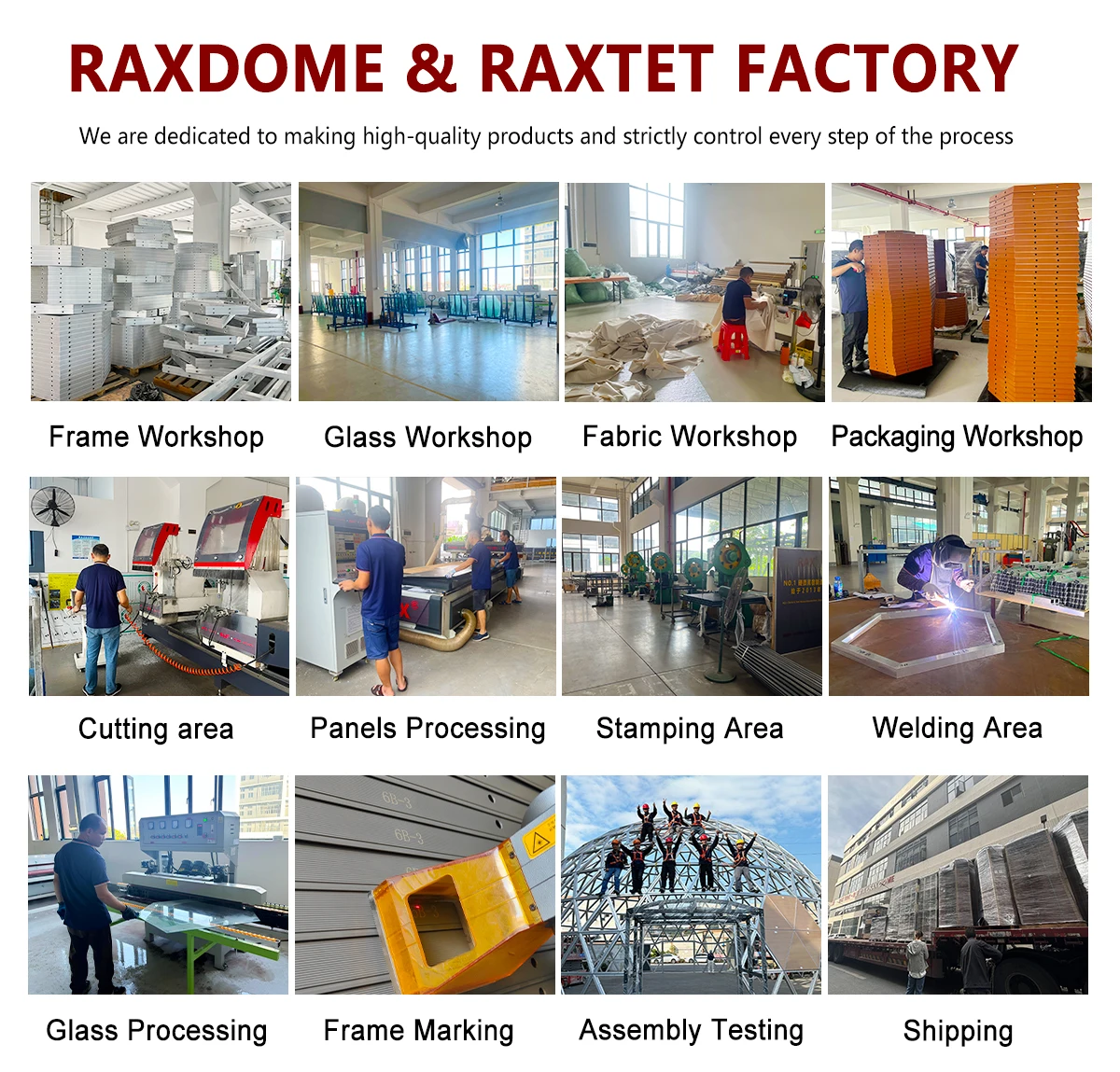 Raxdome เต็นท์โดมแก้วทรงวงรีทรงหกเหลี่ยมสำหรับห้องโดยสารกลางแจ้งทุกฤดู
