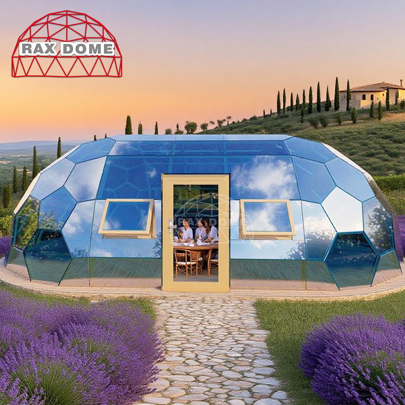 RAXDOME Prefab Hexagonal Oval Glass Dome Tent for Outdoor Cabin All Season Used